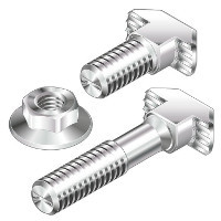 Serie completa di viti e dadi per i profili in alluminio Bosch Rexroth. La particolare forma a T della testa delle viti e dei dadi facilita il montaggio e consente l'utilizzo anche con strutture già assemblate.