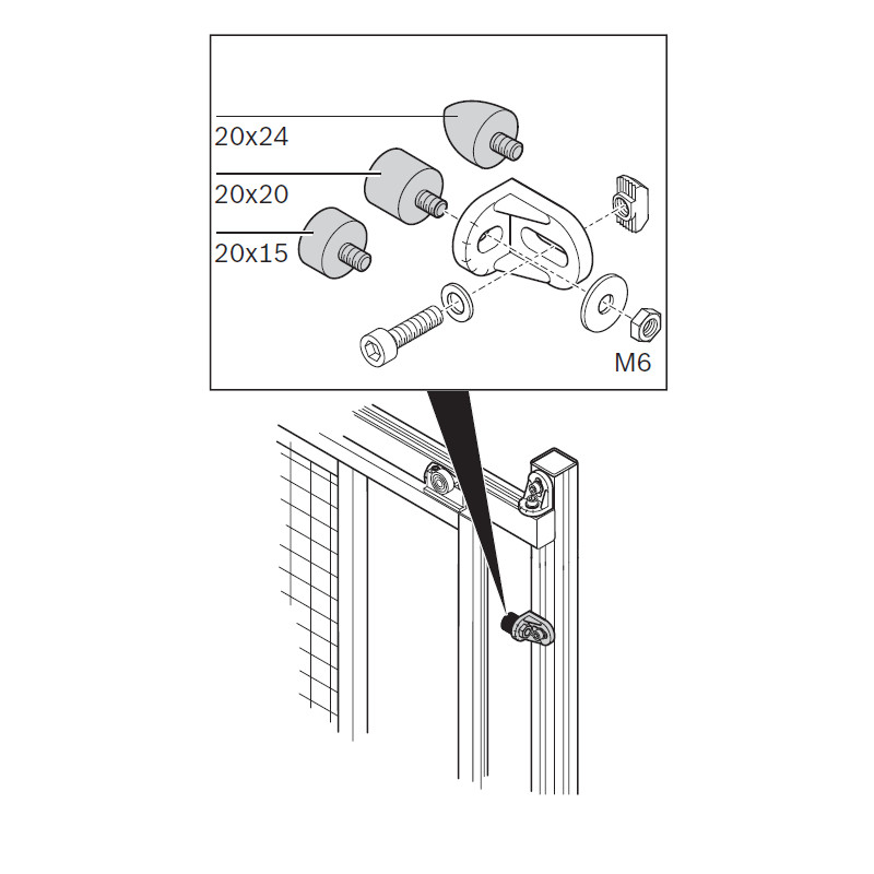Tampone paracolpi in gomma ø20, filettatura M6.