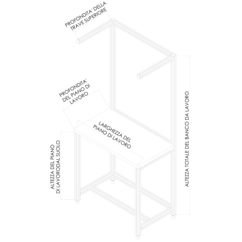 Banco da lavoro standard, con dimensioni configurabili a piacere, fornito già montato.