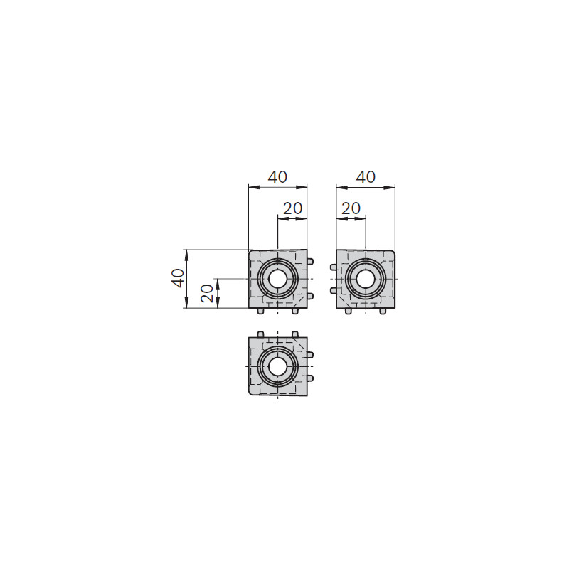 Giunto cubico per profili 40x40 con scanalatura da 10 mm.