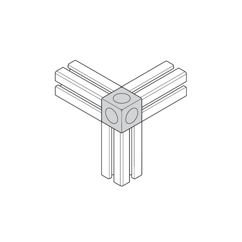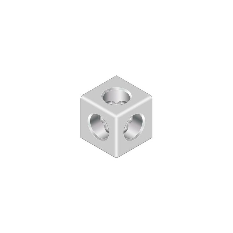 Giunto cubico per profili con sezione 45x45 mm, con scanalatura da 10 mm.