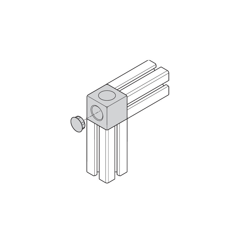 Giunto cubico per profili 50x50 con scanalatura da 10 mm.