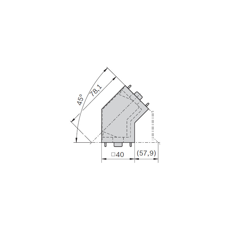Giunto a 45° per profili 40x40 con scanalatura da 10 mm.
