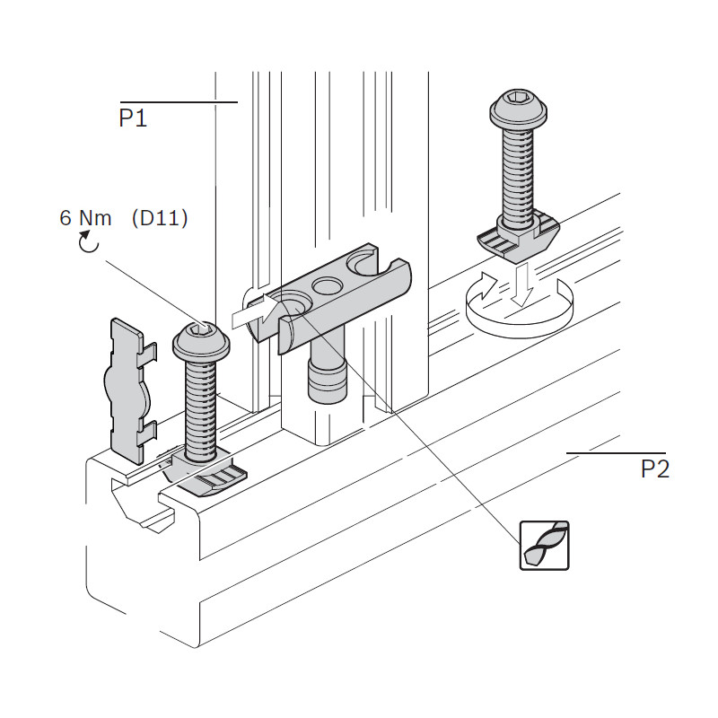 Raccordo a perno per profili con scanalatura da 10 mm.
