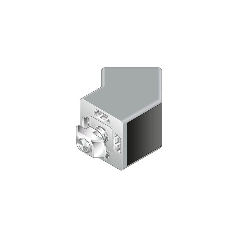 Giunto a 45° per profili in alluminio 30x30 mm, con scanalatura da 8 mm.