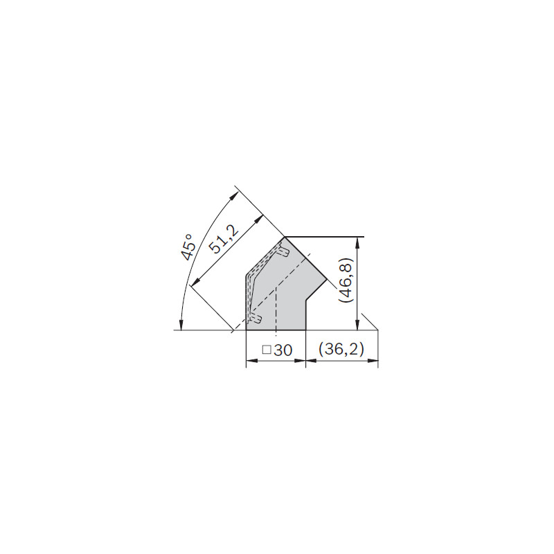 Giunto a 45° per profili 30x30 con scanalatura da 8 mm.