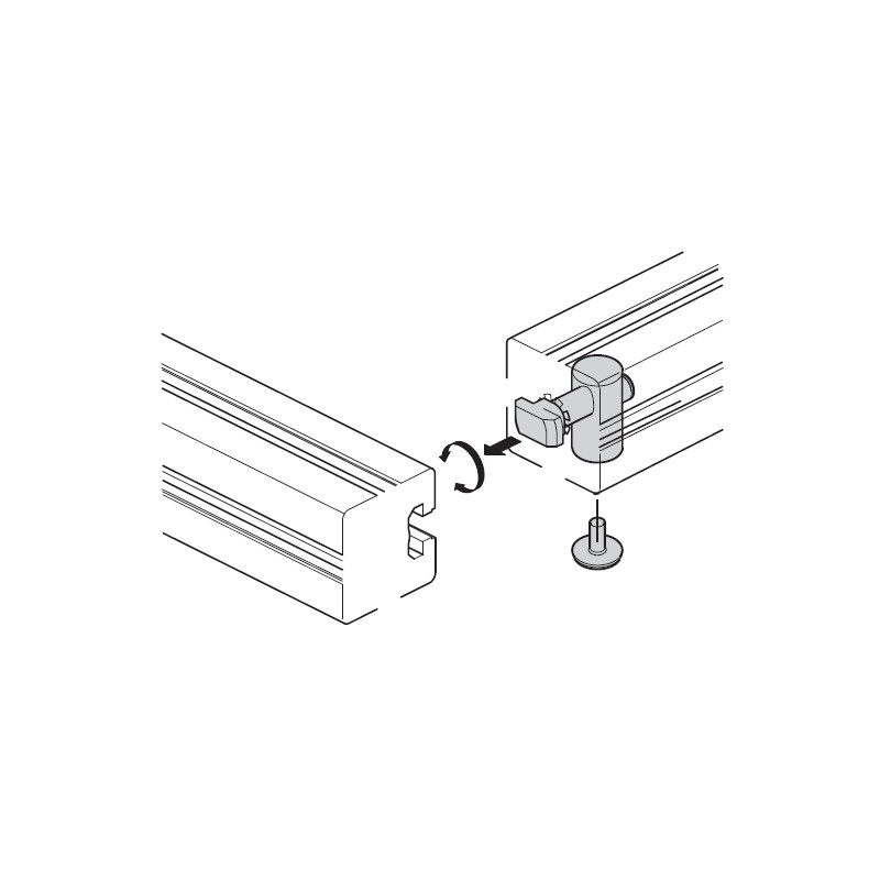 Raccordo a serraggio rapido a 90° per profili con scanalatura da 8 mm.