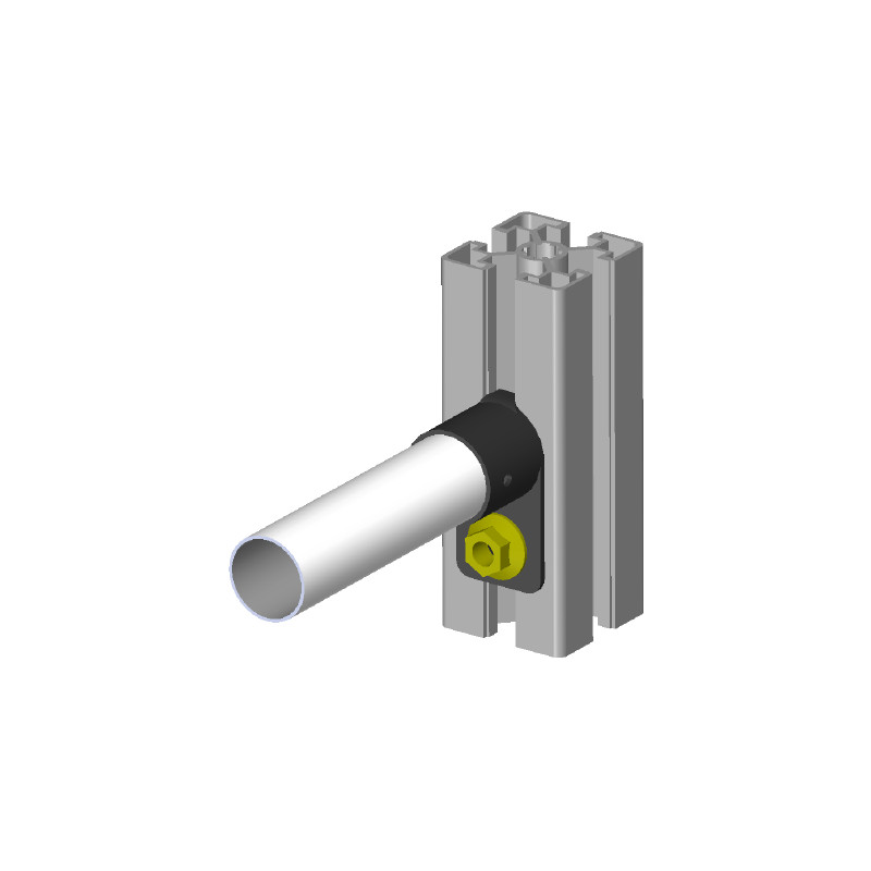 Consente di unire perpendicolarmente un profilo in alluminio con scanalatura e un tubo.