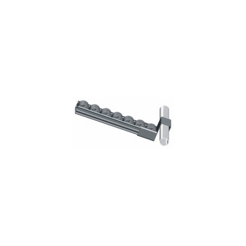 L'estremità della guida ha una battuta meccanica e i portapezzi non possono uscire dal tratto.