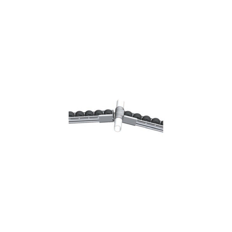Viene utilizzato in combinazione con il supporto dinamico tipo A per creare un angolo a piacere tra due tratti di guida a rulli e per consentire al portapezzi di scorrere liberamente tra un tratto e l'altro.