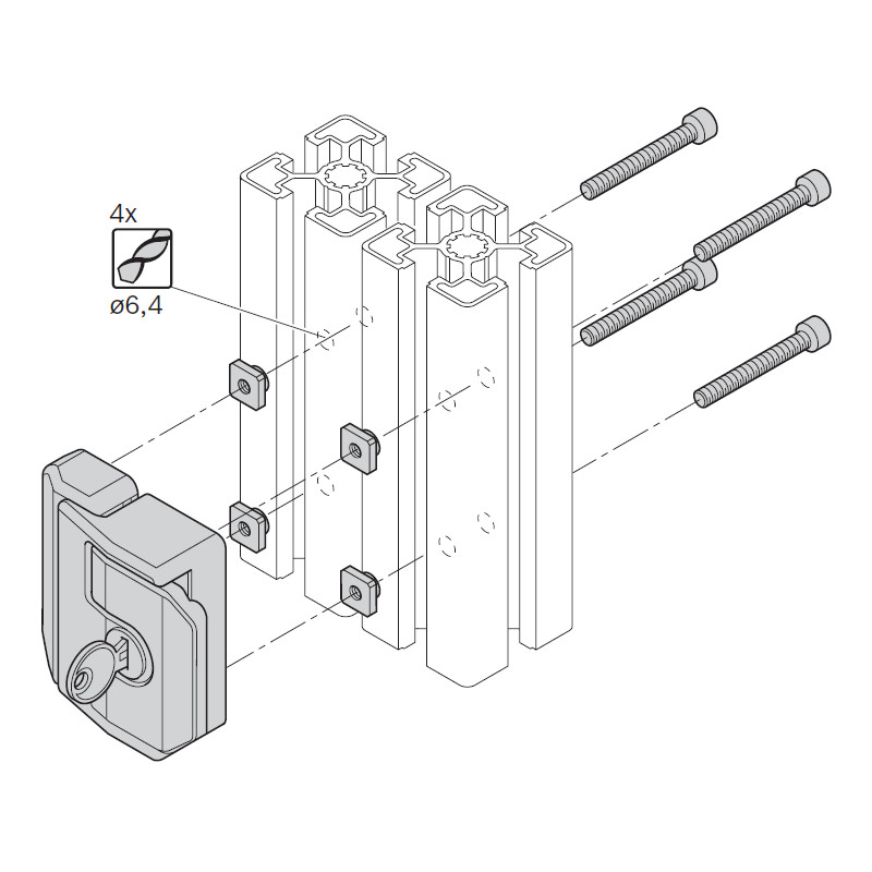 Serratura per porte con chiave, per profili con scanalatura 10 mm.