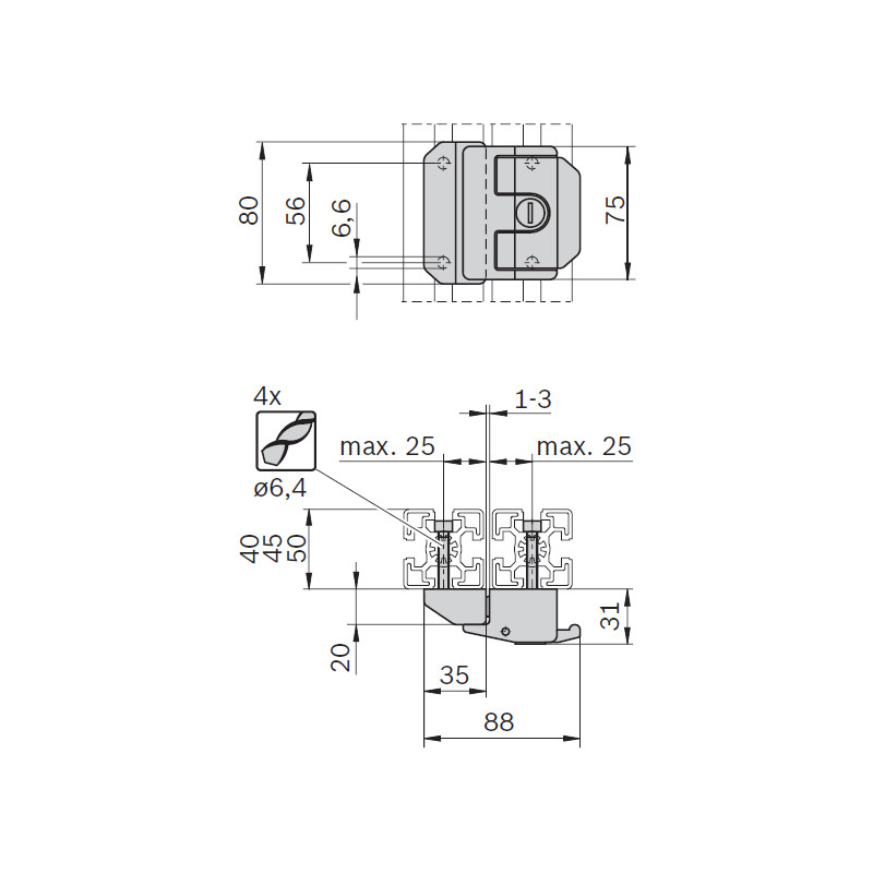 Maniglia fissa per profili con scanalatura 8 mm e 10 mm. Versione corta.