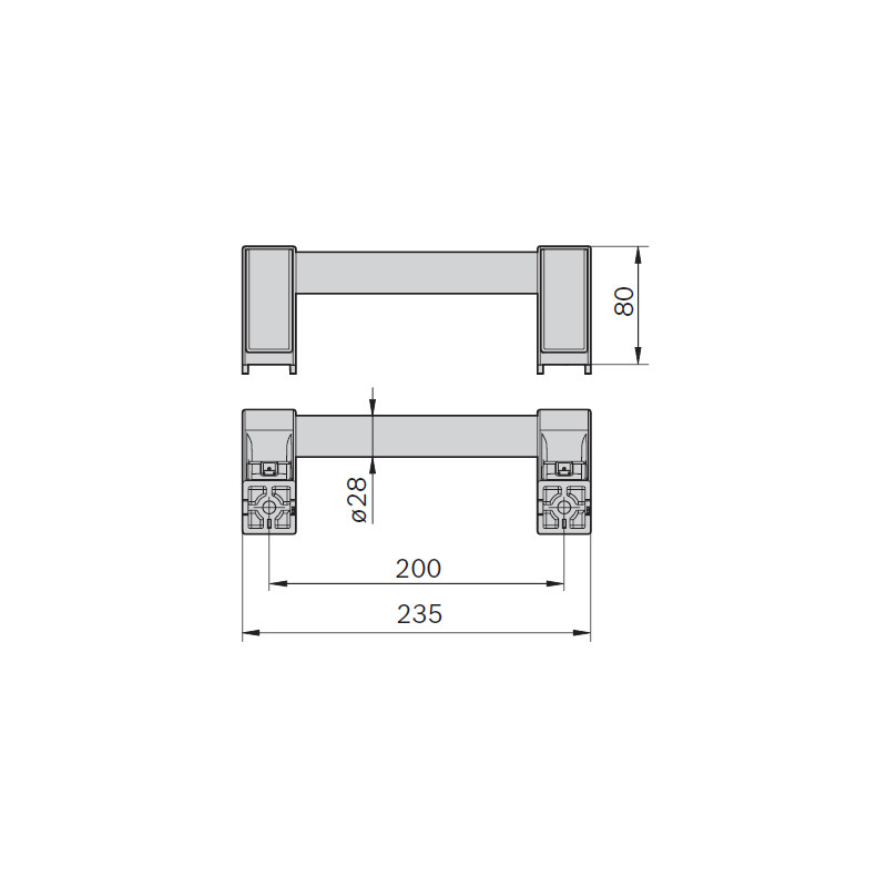 Maniglia fissa per profili con scanalatura 8 mm e 10 mm. Versione corta.