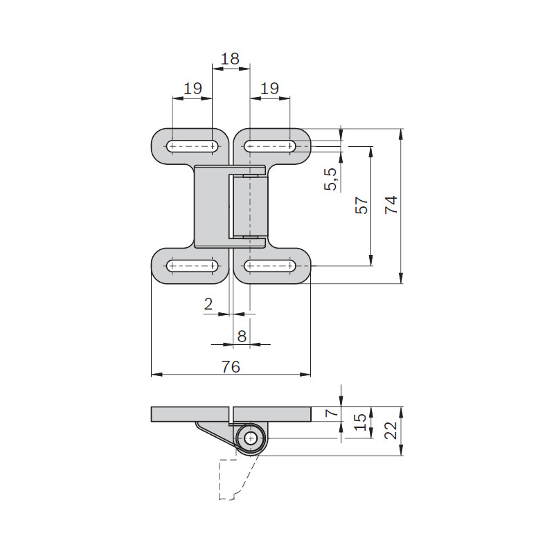 Maniglia fissa per profili con scanalatura 8 mm e 10 mm. Versione lunga.