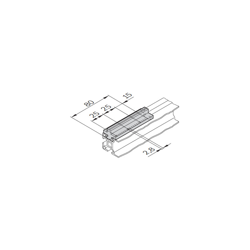 Pattino scorrevole tipo H disassato in POM, per profili con scanalatura da 8 mm.