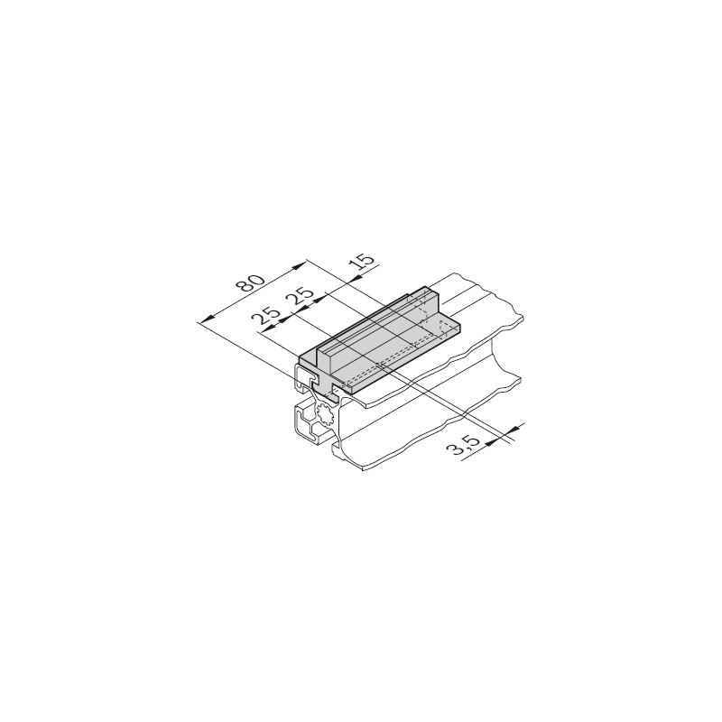 Pattino scorrevole tipo H disassato in POM, per profili con scanalatura da 8 mm.