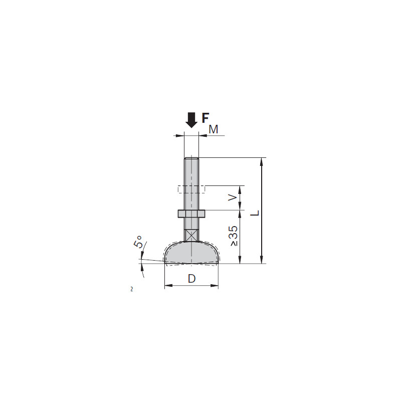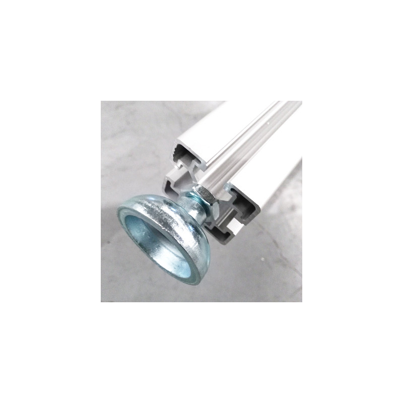 Piede regolabile in acciaio zincato diametro 44 mm, per profili con scanalatura da 10 mm.