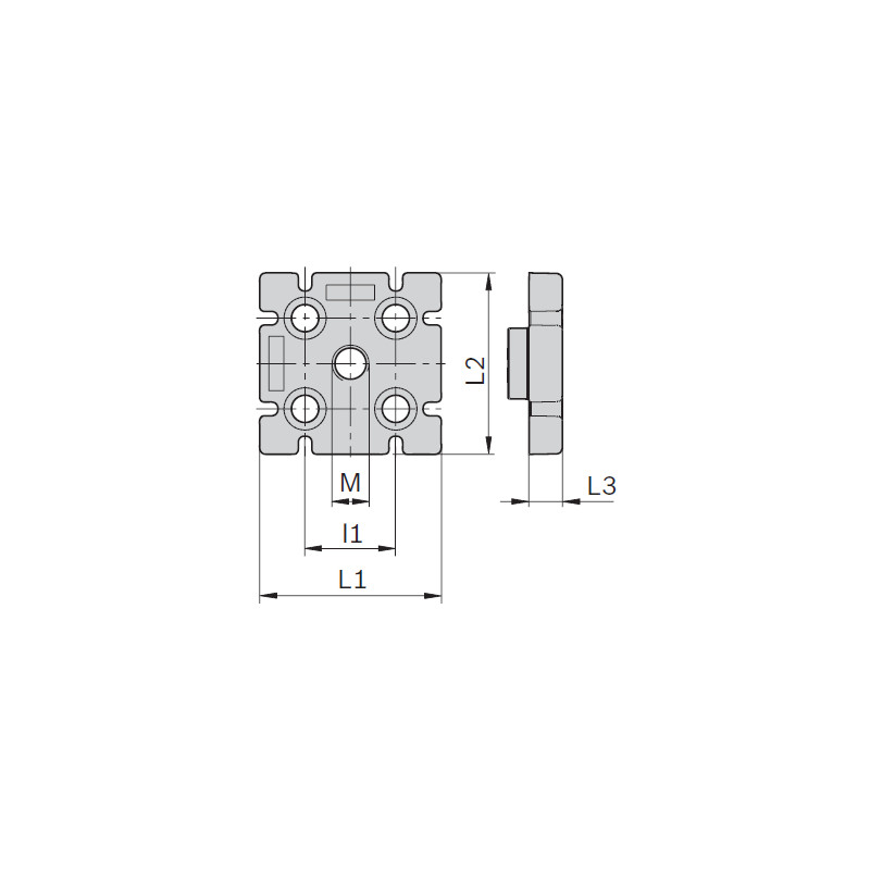 Piastra per piede, adattabile ai profili 60x60 con scanalatura da 10 mm.