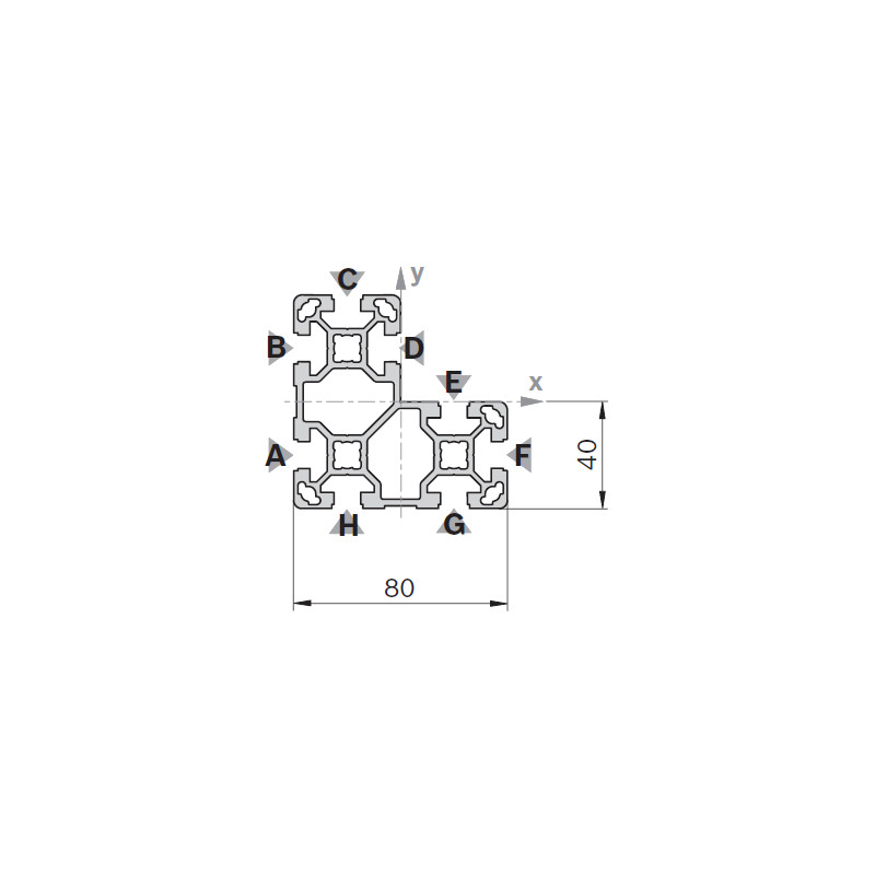 Profilo in alluminio anodizzato Bosch Rexroth, scanalatura 10 mm, sezione 40x80x80 mm. Totale 44 metri.