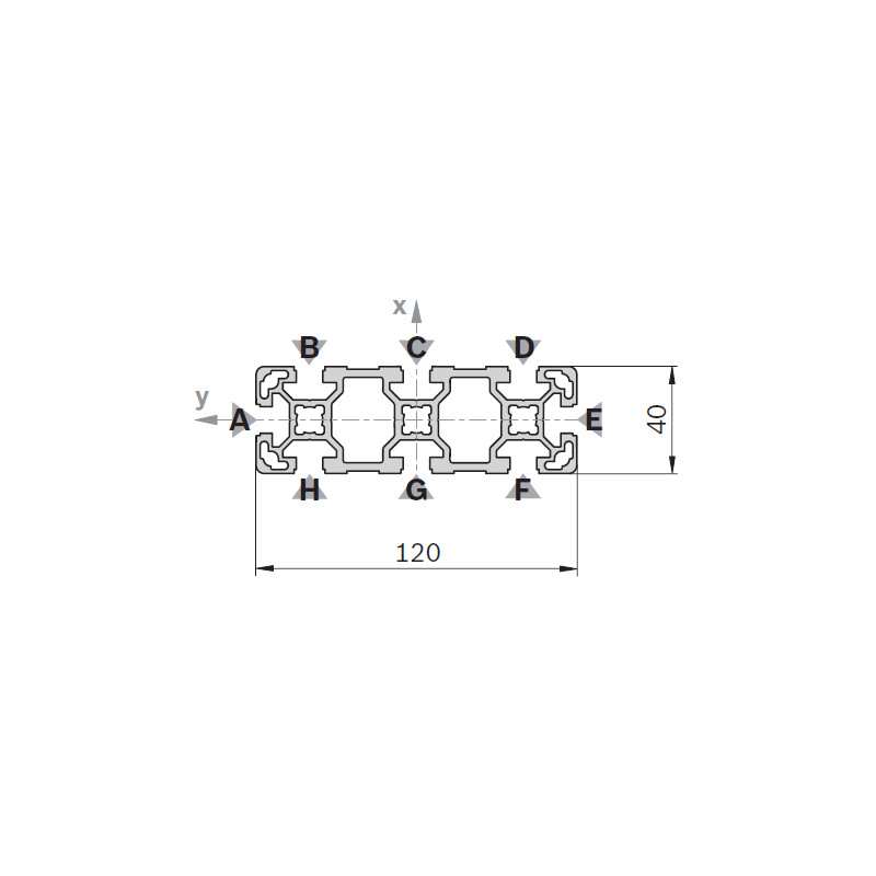 Profilo in alluminio anodizzato Bosch Rexroth, scanalatura 10 mm, sezione 40x120 mm. Totale 44 metri.