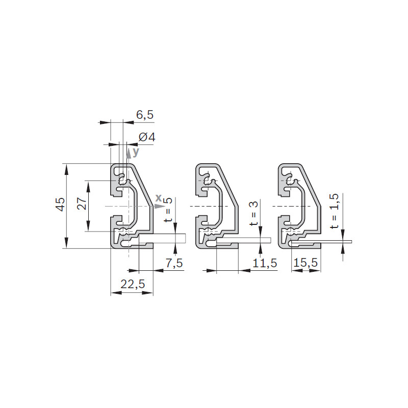 Profilo in alluminio anodizzato Bosch Rexroth, scanalatura 10 mm, sezione 22,5x45 mm.