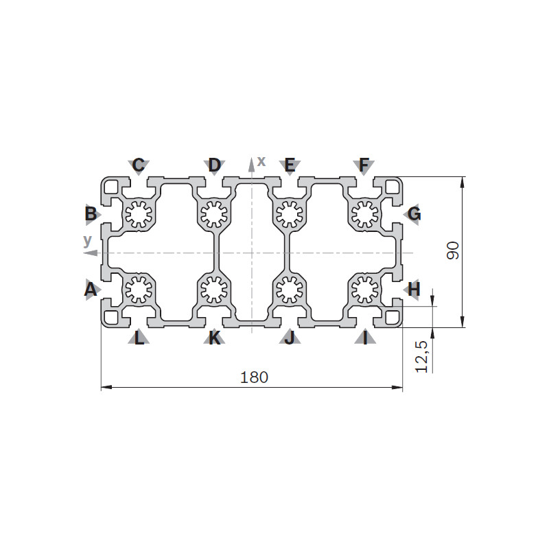 Profilo in alluminio anodizzato Bosch Rexroth, scanalatura 10 mm, sezione 90x180 mm.