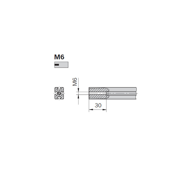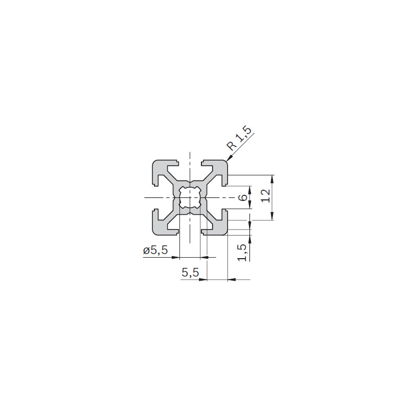 Profilo in alluminio anodizzato Bosch Rexroth, scanalatura 6 mm, sezione 20x20 mm.