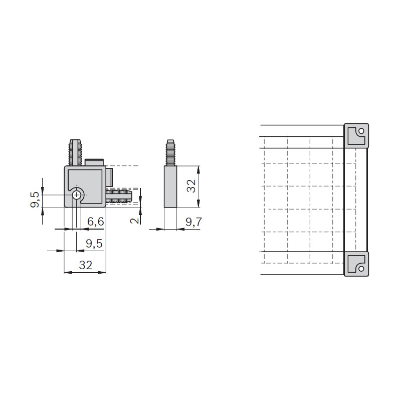 Cantonale a flangia esterno per il fissaggio di reti di protezione, per profili con scanalatura 10 mm.