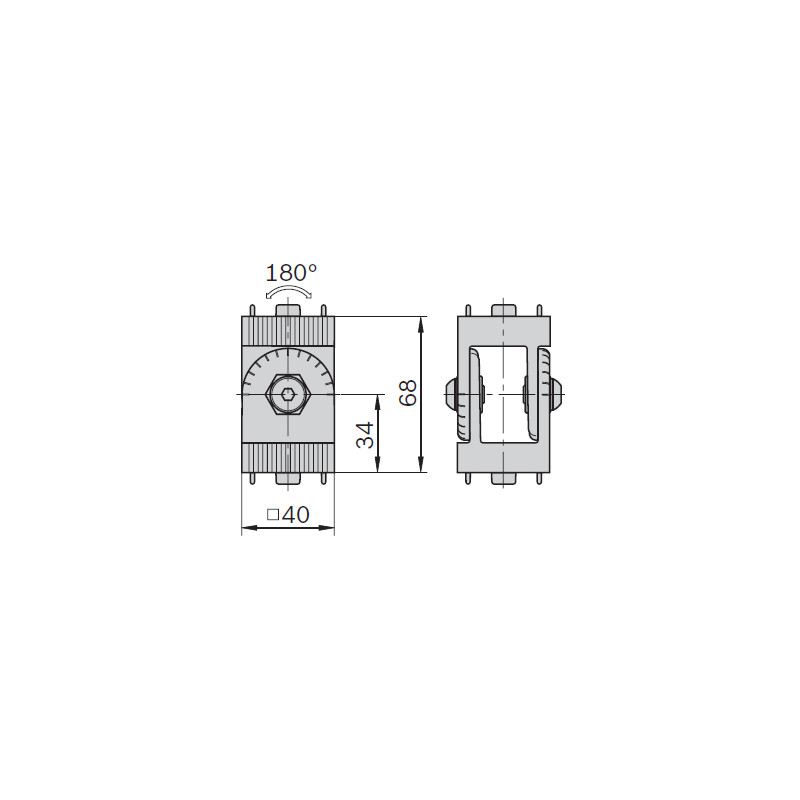 Snodo per profilo 40x40 con scanalatura da 10 mm.
