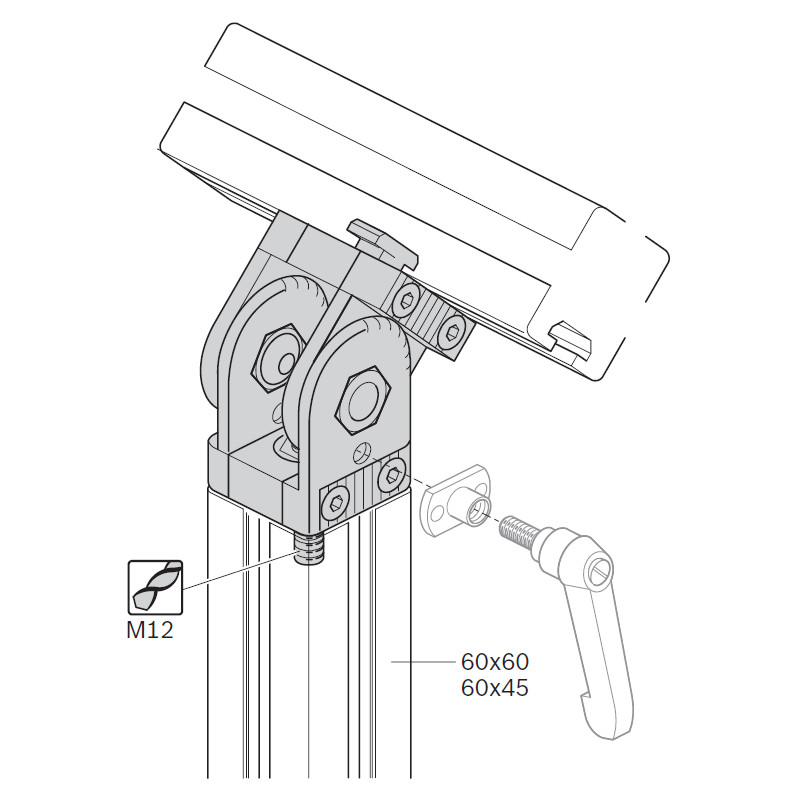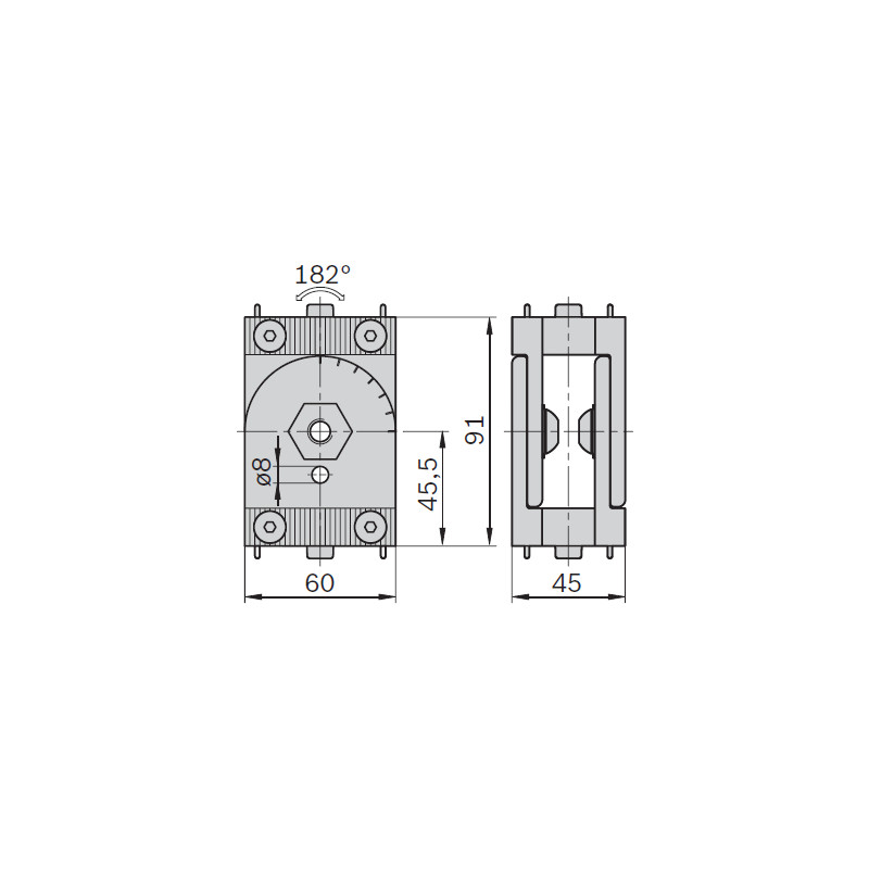 Snodo per profilo 45x60 con scanalatura da 10 mm.