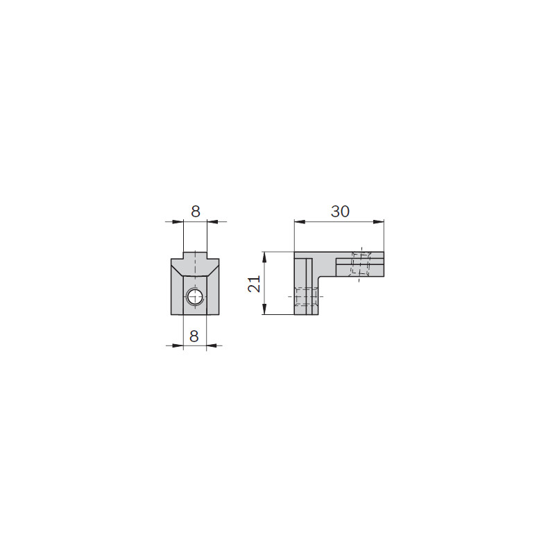 Squadretta angolare flangiata per profili 30x30 con scanalatura da 8 mm.