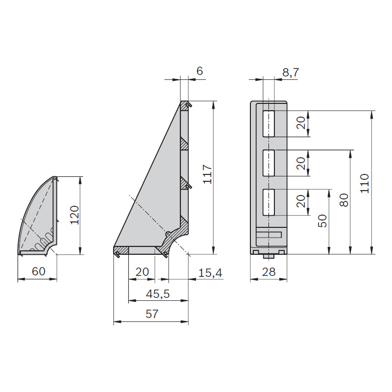 Angolare di fondazione 30x120 mm per profili con scanalatura da 8 mm.