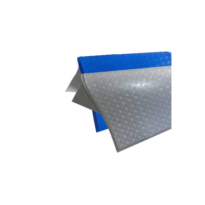 Tappeto versatile multiuso, adatto per camera bianca, uffici, banche, centri commerciali, laboratori. Superficie mandorlata a scaglie contrapposte.